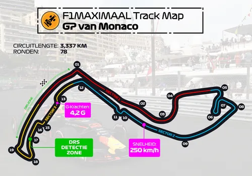 Daarnaast zien we aan de lay-out van Monaco waarom de gemiddelde snelheid er erg laag ligt. Het circuit kent diverse trage bochten en chicanes. Kijk eens naar Mirabeau Haute en Grand Hotel Hairpin. Deze langzame rechter en linkerbocht worden opgevolgd door nog tweemaal een trage rechterbocht. Na het rechte stuk wordt de snelheid meteen uit de rijders gehaald door de Nouvelle Chicane, terwijl in sector 3 met Piscine wederom een relatief trage bochtencombinatie te vinden is.