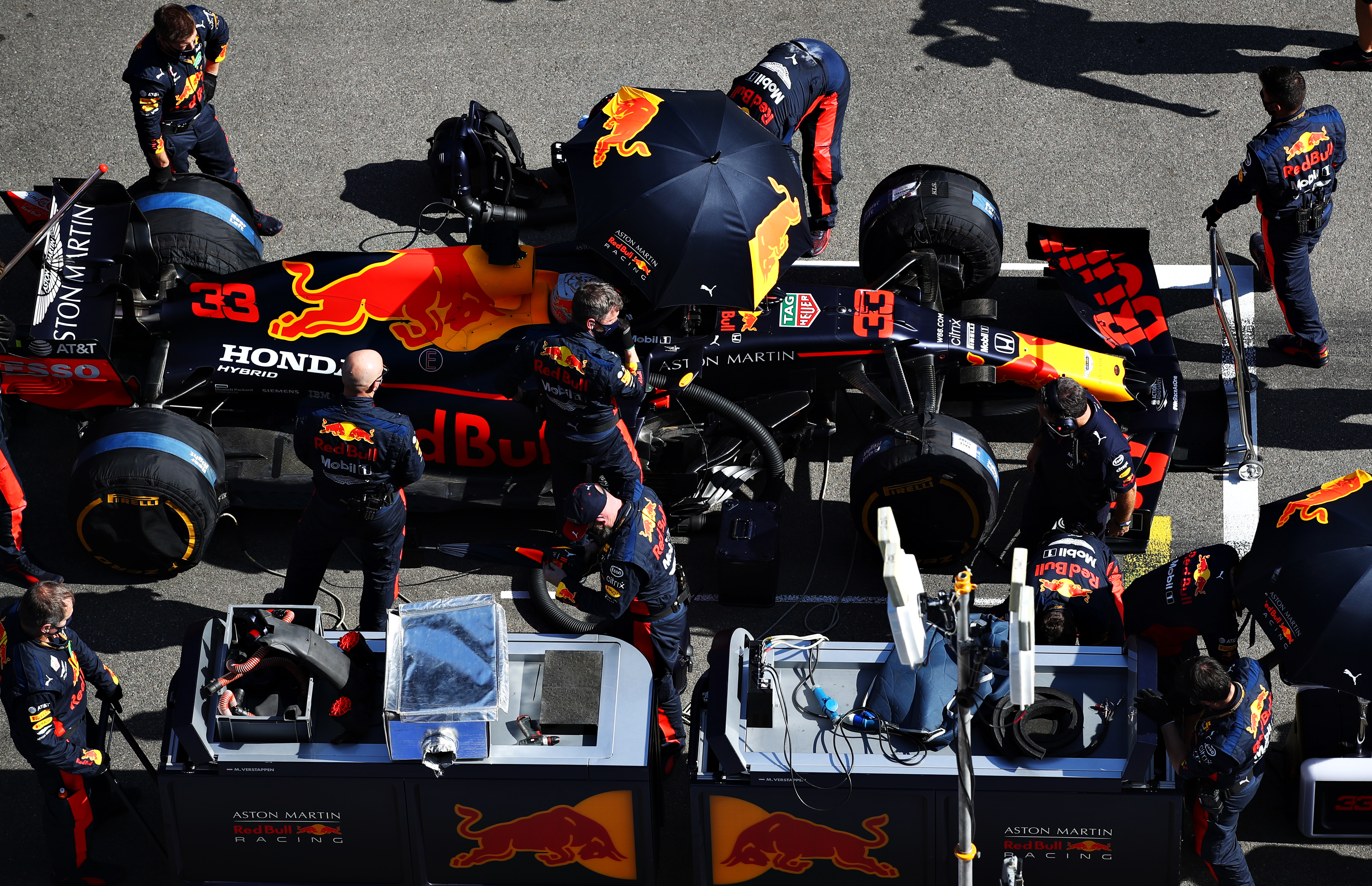 Honda-motor achterin de RB16B. Red Bull zal ergens in dit restant van het seizoen een vierde motor moeten inzetten, omdat de huidige derde motor van de Nederlander het niet vol zal kunnen houden tot en met november. Een vierde motor betekent een fikse gridstraf, dus het is zaak om een penalty 'slim' te plannen. De keuze om dat aankomend weekend in Rusland te doen ligt voor de hand, want Mercedes is doorgaans het te kloppen team in Sochi en het pakken van een gridstraf door Verstappen zou relatief gezien dus de minste pijn op kunnen leveren.