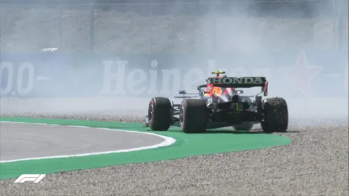 Perez na een uitstapje in de grindbak tijdens Q3 in Barcelona (Foto: Red Bull Content Pool/Getty Images)