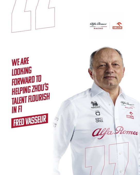 Vasseur heeft in een persbericht van Alfa Romeo gereageerd op de komst van de Formule 2-coureur: 'Met plezier verwelkom ik Zhou bij het team van Alfa Romeo. Zhou is een enorm getalenteerde coureur, zoals weerspiegeld wordt in zijn Formule 2-resultaten. Wij kijken er naar uit om zijn talent tot uiting te laten komen.'