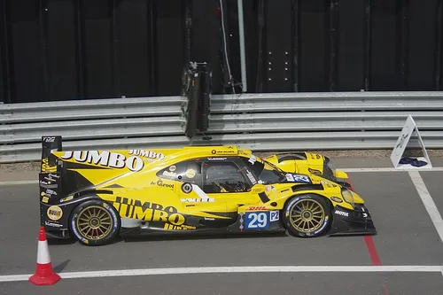 knalgele #29-Oreca, die niet te missen is dankzij de stickers van Jumbo